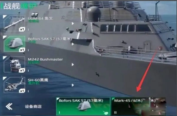 在战舰维护页面中,选中更换的武器。