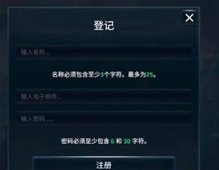 3、进入注册页面后,把新信息填写完整完成注册。注册完成后我们就可以进入游戏了。