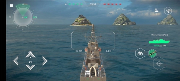 4、按两下前进键即可自动按最大速度前进,将准许移动到敌舰方向,雷达自动缩地敌方