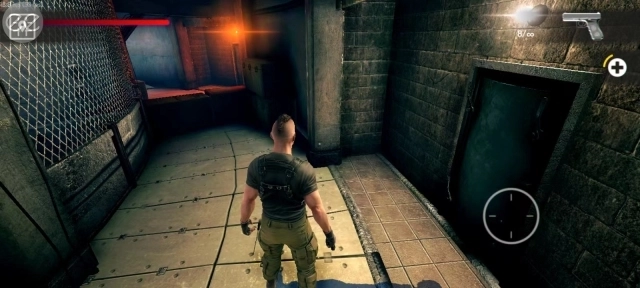 5、动画结束后,玩家会置身于一个小房间内。在这个房间里,滑动左边的空白区域能够控制角色移动,而滑动右边的区域则用于瞄准射击。第一步,先走到门口位置。