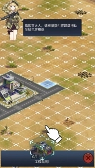 3、前期进行建造功能时,只需依照新手教程的引导操作。关于建造方法,只要找到你想要建造的建筑,然后将其拖至绿色方格内就可以了。