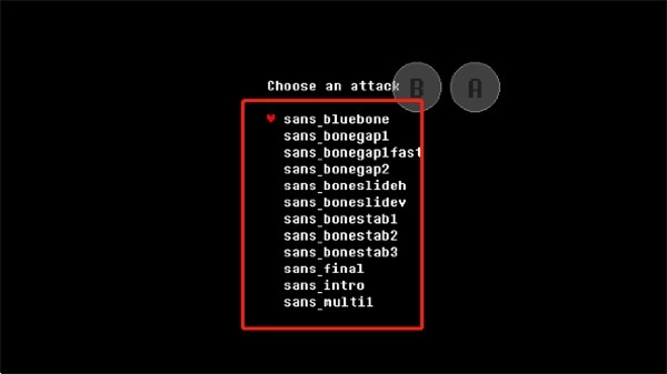 6、以下图片展示的均是在“sans_bluebone”地图中的表现,触碰蓝色骨刺能够恢复血量,而触碰白色骨刺则会失去血量。