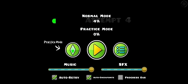 在进入游戏之前,你务必先确认自己是否已准备就绪。这是因为一旦进入游戏,你就得即刻做好操控方块跳跃障碍物的准备。有人或许会说,要是一时缓不过神来,可以先暂停一下。然而,当你按下暂停键后就会发觉,自己完全无法看到方块与障碍物的位置。所以,小编觉得,在非必要的情形下,最好不要去按暂停键,否则在继续游戏的那一瞬间,很可能就意味着你要重新开始游戏了。