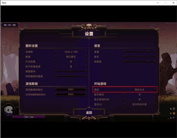 3.在设置中点击右下方语言可以设置成中文模式,也可以调节语音、游戏数据等等;