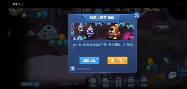 6、抵达游乐场,我们在这儿瞧见了一只神奇的悠悠。上前与之交谈后,才发觉原来是海盗伪装而成,紧接着便触发了战斗。