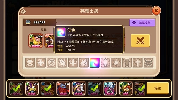 在咱们的游戏里,除了挂机,还能体验到形形色色的战斗。而开战之前,重中之重便是设置战斗阵容。我们能挑选想派出的英雄,点击其头像即可上阵,也能够通过拖动英雄头像来改变英雄站位。接着在魔兽选择处选出想出场的魔兽,这样咱们的队伍阵容就设置好了。