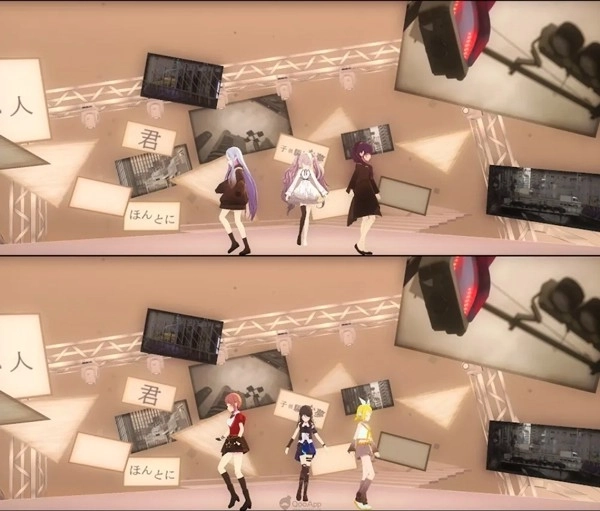 1. 在剧情上,玩家会在「现实世界」与「世界」这两个地方穿梭。剧情的对话场景运用Live2D技术,玩家在推动故事发展的过程中,还能够解锁新服装、歌曲等诸多要素。不仅如此,3DMV中出现的角色都能随意更换,在「现实世界」购买的服装也会在3DMV里展现,玩家可以凭借自己喜爱的角色或造型,去鉴赏生动且美丽的3DMV。