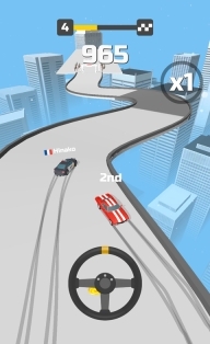 2、该游戏运用竖版操作模式,玩家要通过转动屏幕中央的方向盘,以此实现对赛车在赛道上漂移等操作的控制。