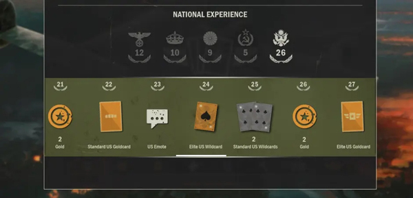 万能牌是新的国家等级体系中的常见奖励(此处的奖励通常都是指定国家的万能牌),也是竞技场中的常见奖励。