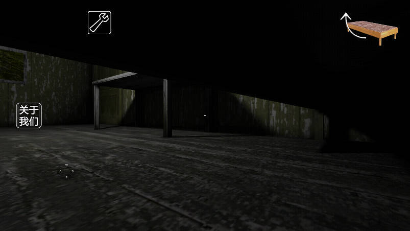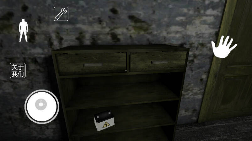 这里是出生房,当靠近床的时候,点击右上角便能躲到床下,衣柜同样也能藏身。床头柜左边的抽屉里写着一行红字:离开这个房子。而右边的抽屉通常不会刷出物品。