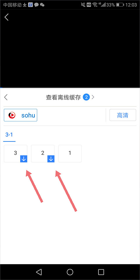 2、在播放画面下方刷新出的【查看离线缓存】页面里,点击想要下载的剧集(也可点击全部剧集),该剧集视频便会被添加到缓存列表中开始下载。