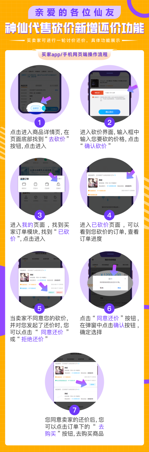 流程:【买家】:浏览商品--点击求降价--填写购买信息并付款--等待卖家降价。