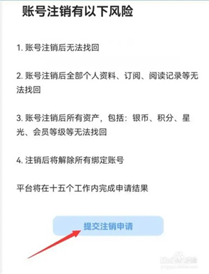 进入页面后,在阅读相关风险后,点击“提交注销申请”后即可等待系统注销,如图所示。
