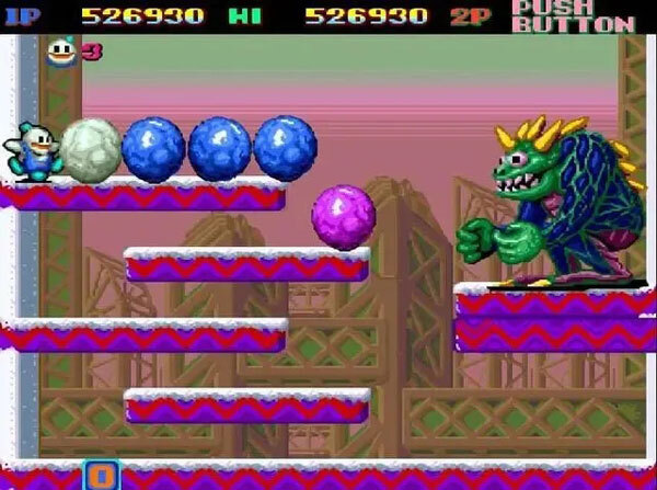 1、《雪人兄弟》当年经典的街机游戏之一。