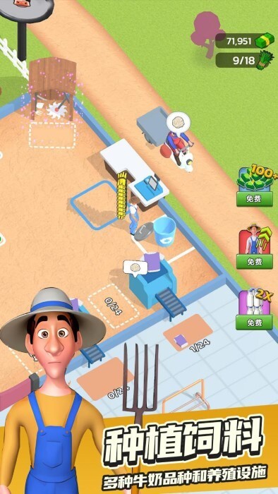 玩法:通过放置经营牛奶场,收获牛奶并加工成多种奶制品,逐步扩展农场规模。