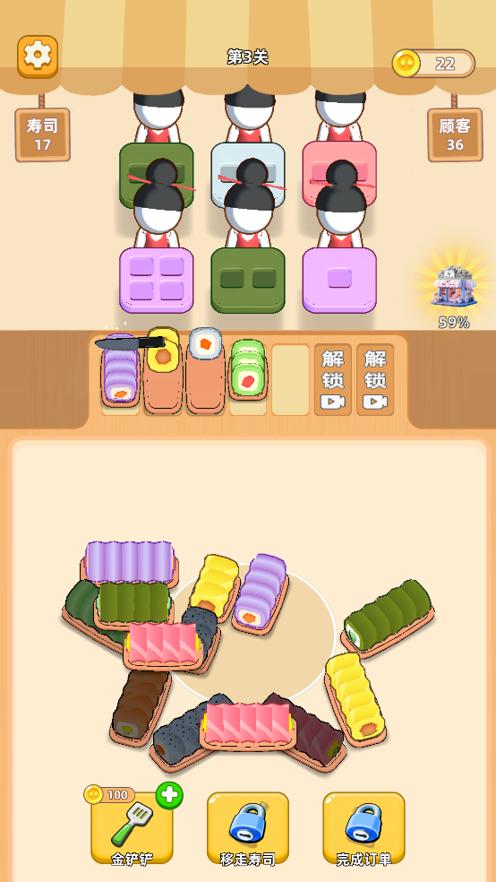 店铺经营:玩家不仅需要制作寿司,还要经营自己的寿司店,提升店铺等级。