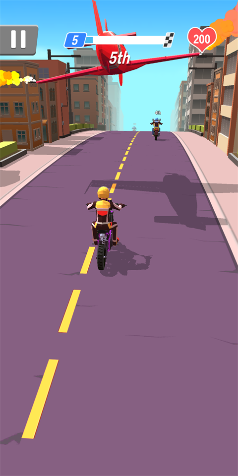 画面细节精致:摩托的金属质感、赛道周围的建筑纹理、攻击时的光影特效都制作精良,让玩家在高速竞速中也能感受视觉盛宴。