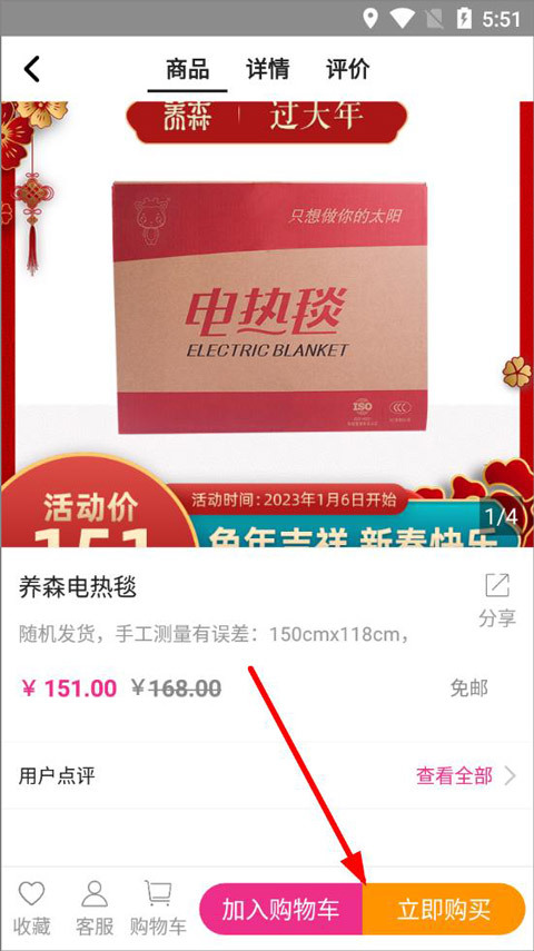 3、点击进入商品详情页面,在这里你能够查看商品的名称、价格以及用户评价,还可以进行收藏商品、联系客服等操作。若有购买意向,可点击加入购物车,或者选择立即购买。