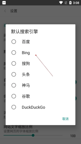 3.找到其中的默认搜索引擎功能。