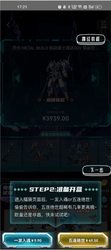 4、点击后进入的页面为抽奖页面,设有单抽和五抽选项。点击“查看所有商品”,即可查看抽奖概率。图中的超稀有款,便是奖池中的最终大奖。
