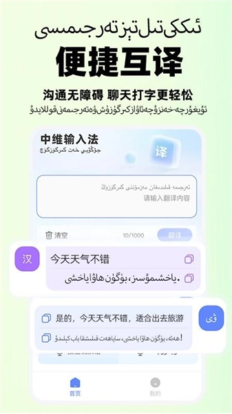 4.这款App具备文本翻译功能,在输入文本后,点击翻译按钮,便能实现维语与汉语的快速相互翻译。