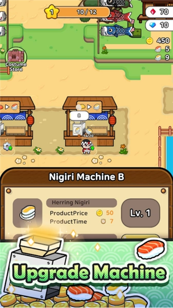 《寿司小镇物语》是Suga Studio精心打造的一款以放置养成玩法为主的模拟经营类游戏。在这款游戏里,玩家将踏上回家的旅程,继承爷爷留下的回转寿司店。为了让寿司店生意兴隆,玩家需要努力提升店铺的名气,并逐步扩大店铺规模。