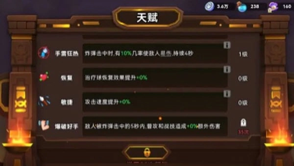 2. 火枪开荒采用普攻触发流,神之祝福方面,优先选择守护神,获取普攻反弹效果;大工匠之力方面,优先选取攻击形态转霰弹。战技则选择跟踪子弹。