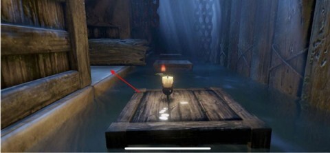 3、一处可推动的漂浮木盖板,推开后跳上去就能找到一根可爱的隐藏蜡烛。