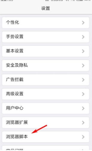 4、在设置页面,点击“浏览器脚本”;