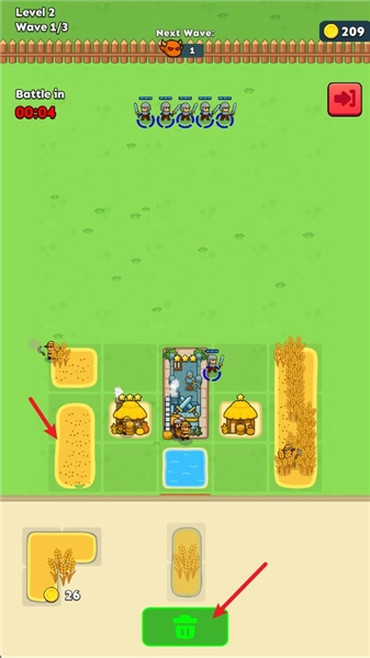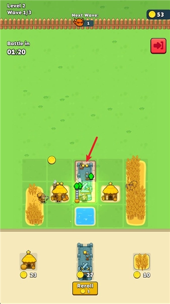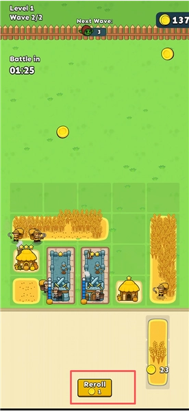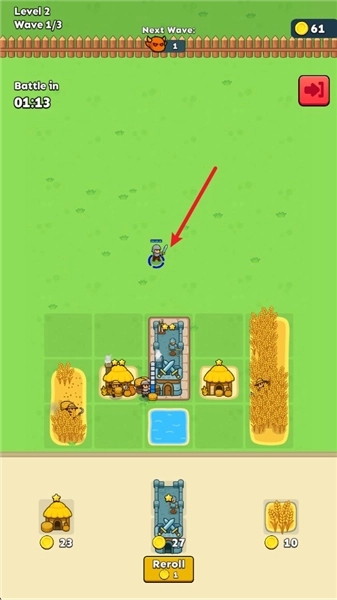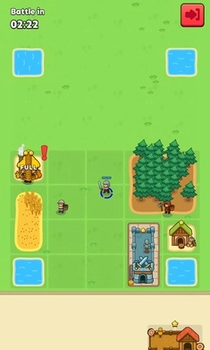 2、房屋放置完成后,会自动产生士兵与农民。农民会奔赴麦田收割小麦,小麦会自行转化为金币。当金币数量累积至指定数值,就能解锁新的建筑设施,一步步拓展你的领地。