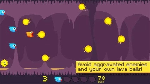 2、在游戏中,玩家需持续点击屏幕,才能保持处于屏幕中间位置。在此过程中,不仅要躲避敌人的追击与尖刺,还得躲开自己吐出的火焰球。一旦火焰球触碰到地面,就会触发弹射效果。