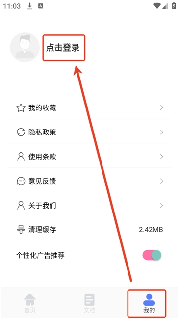1. 点击【我的】,再点击“点击登录”,即可进行账号注册或登录。