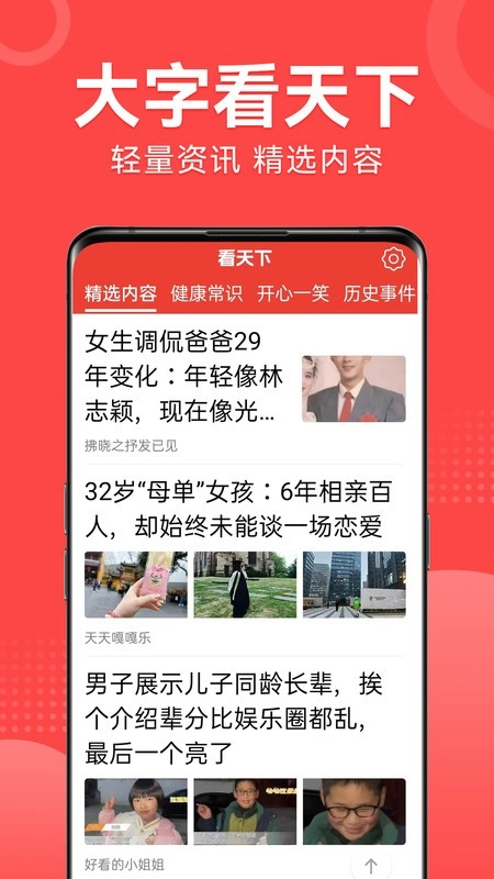 多元资讯:大字看天下呈现丰富多样的养生、生活及健康资讯,内容涉及健康饮食、运动锻炼、心理健康等诸多领域,全方位满足用户各类需求。