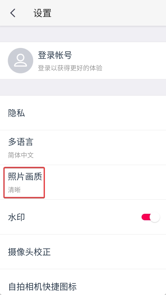 2、在设置中点击照片画质