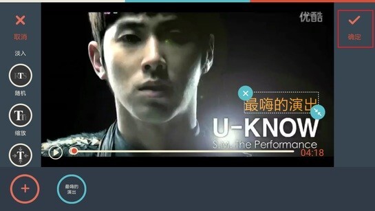 4、选择字幕样式后,轻点屏幕中间打开小键盘,输入文字,挑选字体与颜色,点击确定回到字幕菜单。