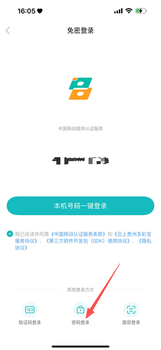 4、在密码登录界面,输入手机号和密码,点击登录,完成登录操作。