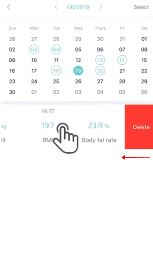 3、若要删除记录,向左滑动需删除的那组记录,然后点击【删除】按钮即可。