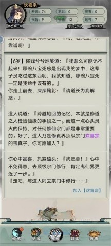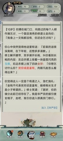 3、玩家可以加入青云宗、欢喜宗和华严宗,不同的宗门将引领玩家走向截然不同的修仙之路。