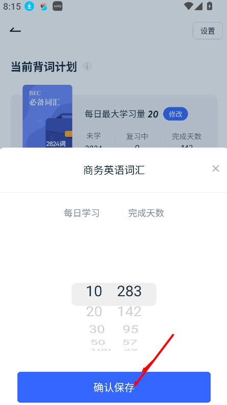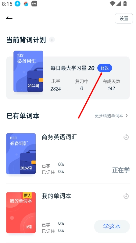 2、修改每日学习单词数量。