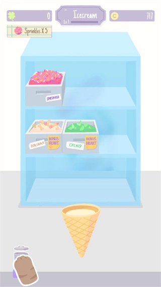 这款冰淇淋主题的模拟经营游戏充满趣味,操作轻松易上手。在游戏过程中,你需要依据顾客的具体需求,调配出不同风味的圣代甜品,每完成一份订单就能获取相应的金币奖励。积累的金币还能用来装点你的小店,让它更具特色与吸引力。