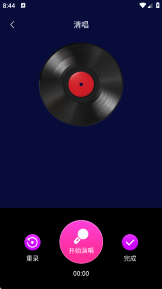 2、点击右上角的“清唱”按钮进入清唱页面,随后选择“开始演唱”,即可进行各类歌曲的清唱。