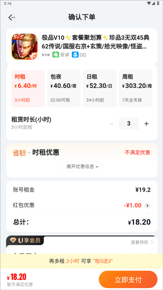 3、超值租号:0.1元起即可租用,提供当下热门的优质游戏账号租赁服务,让你体验高品质的VIP账号。