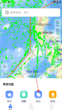 1、在船位界面,点击【标记】选项,进入我的标记页面。