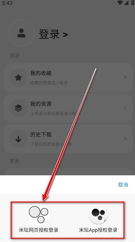3.如下图所示,软件支持米坛网页授权登录和米坛授权登录。在这以点击前者为例。