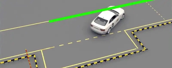 左后视镜下沿与停止线对齐,是左右倒库时判断打方向的关键节点,也是进库后决定是否停车的依据。倒库时,若两者重合,往哪个方向倒库就把方向往哪边打满;进库后,当左后视镜下沿与库口横线重合时,即可停车。