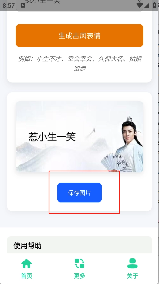 古风小生表情包制作工具,只需输入关键词就能生成你想要的表情包素材,所有功能均为免费,生成的表情包可保存并用于聊天软件,让聊天更有趣味,轻松化解聊天尴尬。