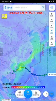 1启动应用后,轻点“实时台风”模块,就能直观查看台风的行进轨迹,了解它的移动速度和方向。