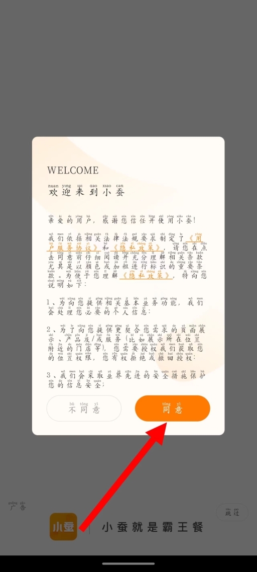 1、打开,在弹出的欢迎页面中,点击同意按钮,进入首页。