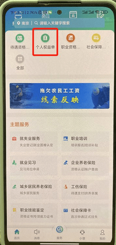 2.首页点击“个人权益单”。