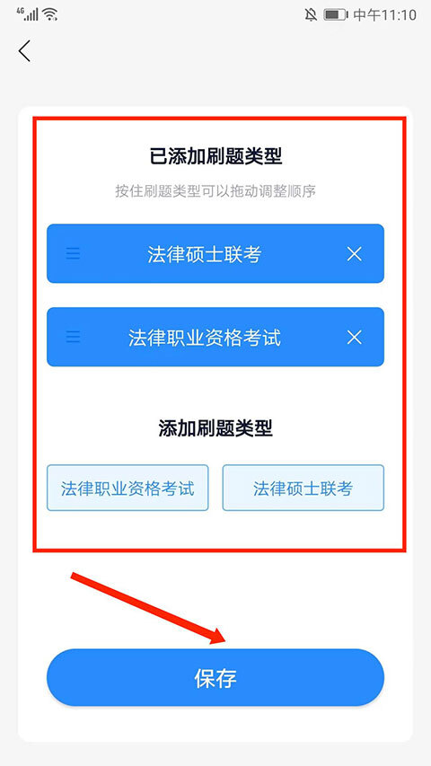 2、添加需要的刷题类型,然后选择下方“保存”选项,